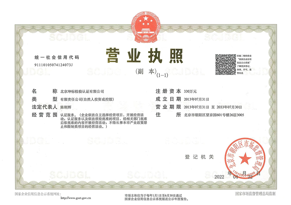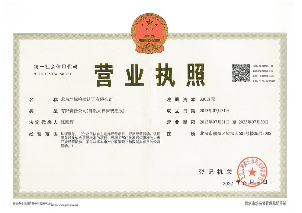 北京坤標(biāo)檢驗(yàn)認(rèn)證有限公司