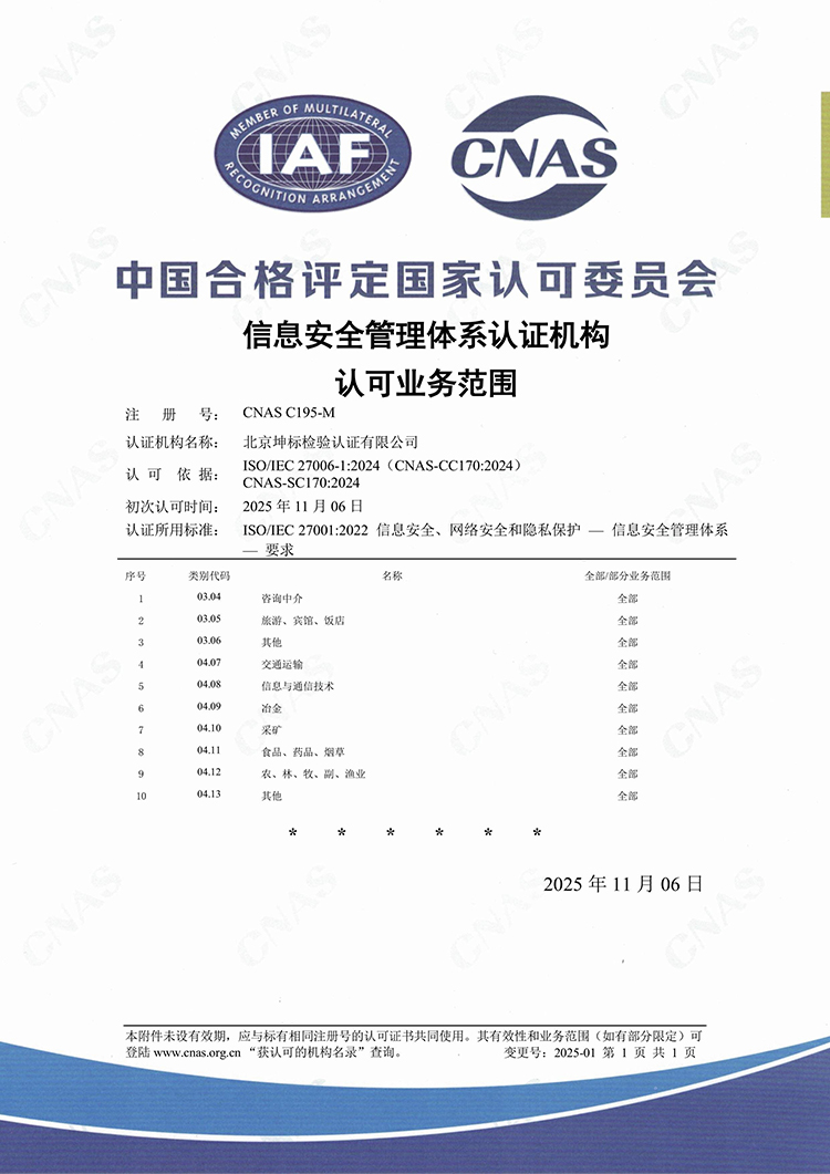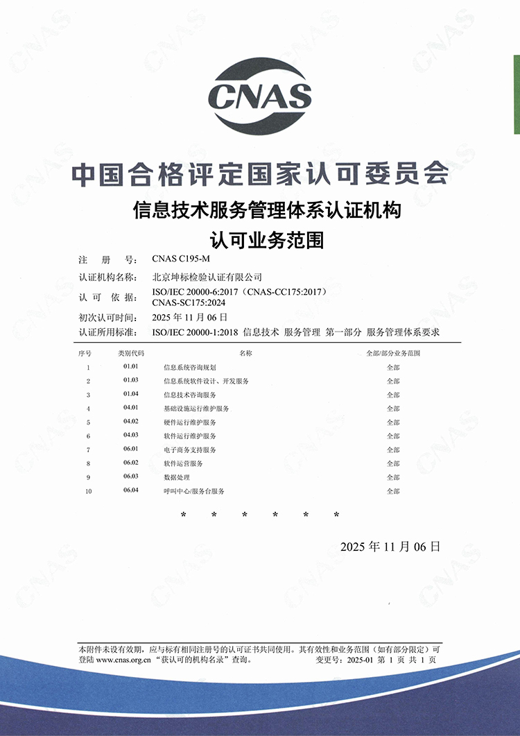 CNAS-C195-M信息技術(shù)服務(wù)管理體系CNAS-C195-M信息安全管理體系
